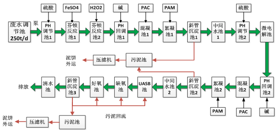 广西田东锦亿科技有限公司污水处理工程调试报告 一、项目概况 1.污水处理 工艺流程 广西田东锦亿科技有限公司废水处理工程处理废水量250m/d,处理流程如下: 2. 工艺流程说明 本项目设计废水处理规模为250m/d,首先废水经管网收集进入废水调节池,在调节池内均衡